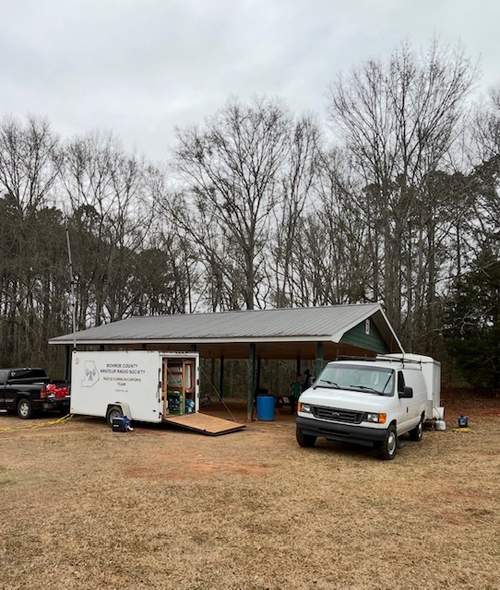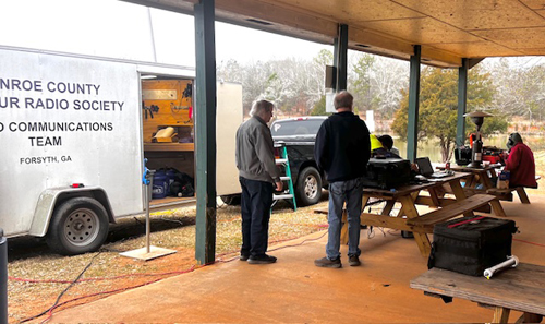 2025 Winter Field Day Results Winter Field Day was held at the Monroe County Recreational Center Pavilion #3 located at 100 Dan Pitts Drive in Forsyth GA. 239 contacts were made on SSB. We worked 4 bands. No digital contacts were made. Kenny and Corbett brought trailers and we set up around the pavilion. We had two dipoles and a vertical antenna set up. |